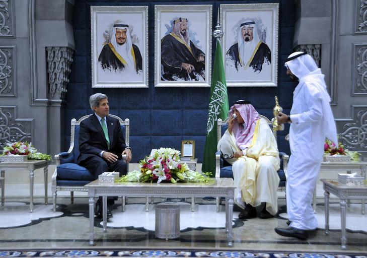 | Keywords: Secretary Kerry Meets With Saudi Foreign Minister al-Faisal.jpg  en U S Secretary of State John Kerry participates in a traditional coffee ceremony with Saudi Foreign Minister Prince Saud al-Faisal upon his arrival in Jeddah Saudi Arabia on June 25 2013 State Department photo/ Public Domain 2014-06-25 05 57 34 http //www flickr com/photos/statephotos/9133917943/sizes/o/in/photostream/ U S Department of State U S Department of State http //flickr com/photos/9364837 N06/9133917943 2013-06-25 16 50 18 United States Government Work PD-USGov Uploaded with UploadWizard John Kerry in 2013 Saud bin Faisal |
