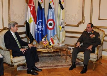 | Keywords: Secretary Kerry Meets With Egyptian Defense Minister al-Sisi.jpg en U S Secretary of State John Kerry meets with Egyptian Defense Minister Abdul Fatah Khalil al-Sisi in Cairo Egypt on March 3 2013 State Department photo/ Public Domain 2013-03-03 13 07 09 http //www flickr com/photos/statephotos/8524742410/sizes/o/in/photostream/ U S Department of State U S Department of State http //flickr com/photos/9364837 N06/8524742410 2013-03-03 16 50 34 United States Government Work PD-USGov Uploaded with UploadWizard John Kerry in 2013 Abdel Fattah el-Sisi |