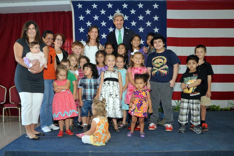 MAKE A MEME View Large Image Secretary Kerry Poses for a Photo With the Children of Consulate General Jeddah Staff.jpg en U S Secretary of State John Kerry poses for a photo with children of staff at the U S Consulate General in Jeddah Saudi Arabia on June 25 2013 ...