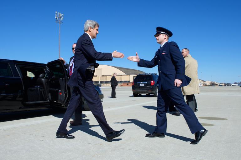 | Keywords: Secretary Kerry Prepares to Shake Hands With Air Force Protocol Officer Before Flying to Egypt, Switzerland.jpg en U S Secretary of State John Kerry prepares to shake hands with a U S Air Force Protocol Officer as he arrives at Andrews Air Force Base in suburban Washington D C on March 12 2015 en route to a development conference in Sharm el Sheikh Egypt and a round of nuclear program negotiations with Iran in Lausanne Switzerland State Department photo/ Public Domain 2015-03-12 11 20 47 http //www flickr com/photos/9364837 N06/16794438711/ U S Department of State other versions 38 808078 -76 874942 PD-USGov PD-USGov Sharm el-Sheikh John Kerry Egypt Economic Development Conference Uploaded with UploadWizard |