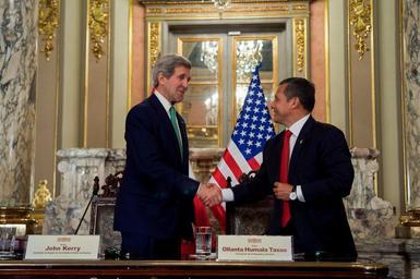 | Keywords: Secretary, Peruvian President Humala Shake Hands Following Meeting, Media Statements in Lima (15814527340).jpg en U S Secretary of State John Kerry and President Ollanta Humala of Peru shake hands after delivering a pair of statements to news reporters that followed a bilateral meeting in the Presidential Palace in Lima Peru on Dec 11 2014 and after the Secretary addressed the 20th session of the Conference of the Parties to the United Nations Framework Convention on Climate Change 2014-12-11 19 37 21 https //www flickr com/photos/statephotos/15814527340/ U S Department of State other versions U S Department of State http //flickr com/photos/9364837 N06/15814527340 2015-02-01 22 50 40 United States Government Work PD-USGov Uploaded with UploadWizard John Kerry visit to South America December 2014 John Kerry with national leaders Ollanta Humala Relations of Peru and the United States |