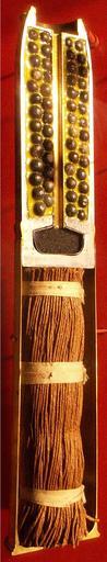 | Keywords: Sectioned18pdrShrapnelRound.jpg This cutaway of an 18-pounder shell reveals the 375 lead-antimony shrapnel balls which were embedded in resin to hold them in a stable position <br>The fuze in the nose not present in this example was time set to ignite as the shell approached the target The fuze sent a flash down the central tube which contained gunpowder pellets The flash reached the powder charge in the cavity in the base of the shell At this point the shell was usually 60-80 feet above the ground and angling down towards the target if the fuze had been set correctly <br>This small explosion propelled the balls forward out of the front of the shell case at increased velocity and the shell's spin caused them to spread in a cone moving forward and towards the ground The effect was of a large shotgun blast fired from in front of and above the target The usual target was barbed wire defences and troops <br>The resin gave off a white puff of smoke as it burned allowing the gunners to check their aim <p>In the cartridge below the shell is a simulated bundle of cordite the propellant charge which fired the shell This is a clipped and brightened section of Image Brisanzgranate 1 db jpg uploaded by User Dickbauch 2007-10-29 rcbutcher Image Brisanzgranate 1 db jpg Artillery at the Canadian War Museum QF 18 pounder ammunition World War I artillery ammunition QF 18 pounder Shrapnel shell QF 18 pounder Sectioned artillery ammunition QF 18 pounder |