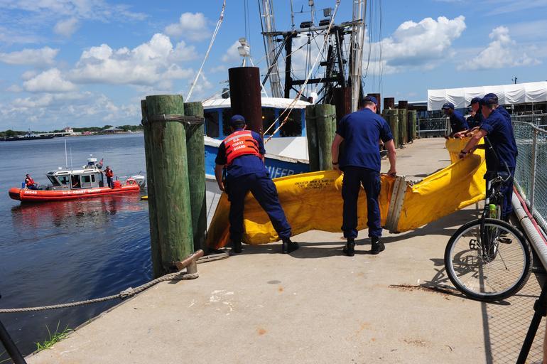 | Keywords: Sector Jacksonville pollution demonstration DVIDS1121455.jpg  en MAYPORT Fla - Coast Guard Sector Jacksonville marine pollution responders and Coast Guard Cutter Valiant crewmembers deploy oil-containment boom around a commercial vessel at the Safe Harbor Marina Wednesday Aug 15 2012 The boom is used to contain an oil spill in order for cleanup efforts to be made U S Coast Guard photo by Petty Officer 3rd Class Jessica Potter 2012-08-15 Petty Officer 3rd Class Jessica Potter https //www dvidshub net/image/1121455 1121455 2013-12-13 00 13 MAYPORT FL US PD-USGov Coast Guard Sector Jacksonville Images from DoD uploaded by Fæ |