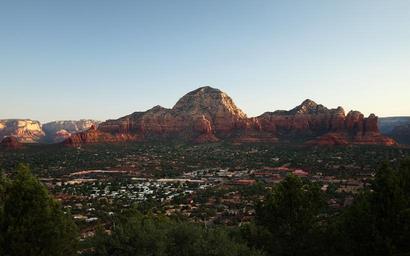 | Keywords: Sedona Arizona-27527-2.jpg Coffee Pot Rock right Capitol Butte center and Chimney Rock left at sunrise as seen looking north from the Sky Ranch Lodge on Airport Mesa in Sedona <br />Photo taken with an Olympus E-P1 in Yavapai County AZ USA <br />Cropping and post-processing performed with The GIMP http //www kenthomas us KenThomas us <br /> personal website of photographer 2010-07-19 6 18-07 <sup>ISO 8601</sup> Ken Thomas This image is released to the public domain and therefore no permission or credit is required <br />Comments and/or feedback however are always welcome Please see my user page or http //kenthomas us my personal website for details and contact info 34 51 09 20 N 111 47 28 84 W heading N Created with GIMP Sedona Arizona Widescreen desktop backgrounds Taken with Olympus E-P1 |