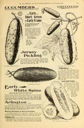| Keywords: Seed annual (16449747981).jpg D M FERRY GO'S DESCRIPTIVE CATALOGUE <br> 35 <br> GUGUMPER <br> Early <br> Short Green <br> or Early frame <br> An Excellent Sort both <br> for Table use and for <br> Pickling <br> Plants verj vigorous and <br> productive Fruit straight <br> handsome small at each <br> end bright green hghter <br> at the blossom end with <br> crisp tender flesh and <br> makes excellent pickles <br> Our Stock is <br> Very Superior <br> Pkt oc <br> Oz 10c <br> ˘2 Oz loc; <br> Lb 'iOc; <br> Lb 50c <br> Jersey <br> Pickling <br> Very popular in New Jersey Intermediate <br> between the Long and the Short Green form- <br> ing a long slender cylindrical pickle which <br> is very crisp and tender Pkt 5c; Oz 10c <br> 2 Oz 15c; Lb 20c; Lb 55c <br> Cucumber Jersey Pickling <br> COJSTINUHD <br> Cucumber Arungton <br> White Spine <br> One of the Best Sorts for Table Use <br> Vines vigorous fruiting early and abundantly fruit uniformly <br> straight and handsome dark green with a few wliite spines <br> flesh tender and of excellent flavor In this country this <br> variety is used more F erhaps than any other for forcing <br> under glass Pkt oi-i Oz 10c; 2 Oz 15c; H Lb 20c; Lb oOc <br> Arlington <br> A selection from the White Spine being more pointed at <br> each end The young fruits are unu' ually crisp and tender <br> and are of very dark green color s that the variety is con- <br> sidered by many to be the best for small pickles ' Pkt 5c <br> Oz 10c 2 Oz 15c h Lli 20c Lb 5 ' C <br> Boston Pickling or Green Prolific <br> A distinct variety very popular ff r pickles Fruit very <br> smooth and symmetrical cylindrical bright green a great <br> producer Pkt 5c; Oz 10c 2 Oz 15c; h Lb 20c; Lb 55c <br> EMERALD a new- rather late variety of very symmet- <br> rical shape and smooth skin It retains its dark green color <br> until nearly ripe It is spineless and the flesh is crisp white <br> and tender Pkt 5c; Oz l5c; 2 Oz 26c; 4 Lb 40c; Lb 1 25 <br> CucuwEER Early Short Green <br> Albino <br> The best white skinned sort <br> Introduced by us in 1894 The fruit <br> is above medium size symmetri- <br> cal with few large spines The <br> flesh is clear white very crisp ten- <br> der and good flavored An excel- <br> lent sort for the home garden <br> Pkt 5c; Oz 10c 2 Oz 15c Lb <br> 20c; Lb 60c <br> Cool and Crisp <br> A strain of White Spine <br> somewhat like the Arling- <br> ton but larger and less <br> symmetrical The flesh <br> is peculiarly crisp <br> and tender and it is <br> one of the very best <br> for taV le use <br> Pkt 5c; <br> Oz 10c <br> 2 Oz 15c; <br> Lb 20c; <br> Lb 55c <br> Early White Spine Cucumber 43827922 149307 77819 Page 35 Text http //www biodiversitylibrary org/page/43827922 1921 10 5962/bhl title 77819 D M Ferry Co ; Henry G Gilbert Nursery and Seed Trade Catalog Collection Biodiversity Heritage Library Seed annual Garden Stories Detroit Equipment and supplies Flowers Gardening Michigan Nursery stock Seed industry and trade Seeds Vegetables U S Department of Agriculture National Agricultural Library bhl page 43827922 dc identifier http //biodiversitylibrary org/page/43827922 DM Ferry Co bhlGardenStories Cucumbers Pickling BHLinbloom u s department of agriculture national agricultural library dm ferry co bhlgardenstories bhlinbloom Information field Flickr posted date ISOdate 2015-02-05 CC-BY-2 0 BioDivLibrary https //flickr com/photos/61021753 N02/16449747981 2015-08-24 04 56 19 cc-by-2 0 PD-old-70-1923 1900 D M Ferry seed catalog Cucumbers Photos uploaded from Flickr by Fæ using a script |
