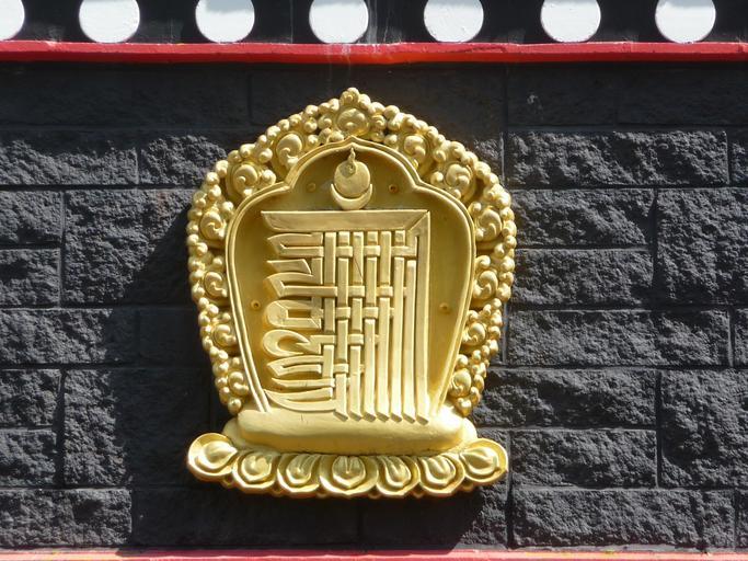 Keywords: Seed syllables in Eskdalemuir 01.jpg en Kagyu Samyé Ling Monastery and Tibetan Centre at Eskdalemuir Dumfries and Galloway Scotland Own Immanuel Giel 2009 Kagyu Samyé Ling