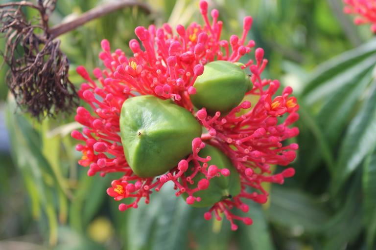 Keywords: seeds blossom bloom tropics flower plant faded seeds was tropical infructescence red green