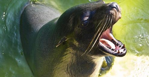 Keywords: seerobbe robbe seal sea lion predator meeresbewohner mammal water creature animal head snout zoo water attack risk tooth