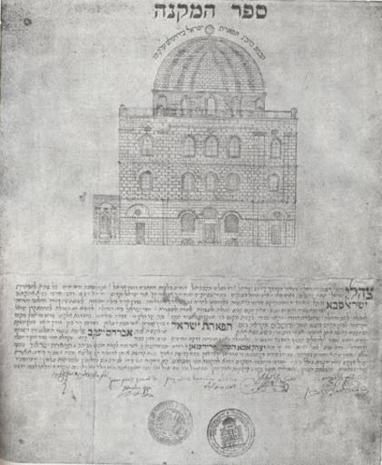 Keywords: Sefer Hamakneh.jpg en Acquisition Scroll of the Tiferes Yisrael Synagogue 1872 Source Jerusalem - The Capital of Israel the New City by Zev Vilnai Achiever Publishing Jerusalem 1960 The original document is in the hands of Mr Gat-Ramon 28 Rashba St Rechavia Jerusalem צה י ורוני יושבת ההרא כי גדו בקרבך קדוש ישרא רב פע י מקבציא הופיע ב בות המחכי בבנין אריא תקוה טובה ורוח חיי כ שהיא תפארת ישאר ופאר ירוש י פאר מאז האד הגדו בענקי בחיר בשחקי כבוד הוד אדומ ור הק' אור ישרא וקדושו ידידי ד' ישישו רכבו ופרשו נשיא אה'ק תו'ב ישרא סבא זצוק הוא הרי נדבת צדקת פזרונו בראשונה בתרומתו הרי כבוד הארץ ו הצ יחה בבנין אדיר ומנוחה ישועת שה פזורה הצו עה והנדחה אשר רבות בשני נדי ג נעי מאין מקו קבוע תפי ה ו עבודה תורה ו תעודה וגבר ישרא בידו הגדו ה הוציא את הסגו ה הרמת קרן ישרא מע ה ש ו תה ה ובהגברת חסדו הראנו כבודו קנות מקו ד' משכנות אביר יעקב מה יקר ח קינו שפרה נח תינו בחצרות א קינו מרו מראשון מקו מקדשינו כונן מקדש מעט תוככי ירוש י ונקראה בש תפארת ישרא בנין אפריון אשר נתנה ד' ע יון במרו הר ציון כרצון יריאיו כחפץ ותשוקת השתוקקות קדושת איתן אדונינו אבינו רועינו ציס ע נשיא אה ק ת ו כקש ת מו ה אברה יעקב ש יט א בעזר חמ תי ורב השגחתו הופיע רב טוב גמור ו הש י הבנין הנכבד והנעי תה ה בארץ תזכרנה צדקת הנדיבי עושי רצון כבוד קדשו ובקה תחד כבוד הגביר הנע ה יד הגדו ה נדיב ושוע מע י וצנוע וו ח וכו' מו ה יצחק אבא הכהן פרידמאן נ י ויזרח מטיטיעוו ו' אשר זכה בנות מקו בביהכ נ תפארת ישרא בכסף מ א והמקו הוא המסומן במצריו בכות מזרח מקו החמישי מההיכ ו צד צפון בכח קדושת הארץ ובכח קדושת איתן אדמו ר הק' ש יט א ובכח המוסר בידינו מאת הקה הקדוש ויח ס מעדת כו ינו הי ו מכרנו והח טנו המקו ההוא הקונה הנז' ומעומ ע ק המקנה הנז' בידו מכירה גו ש ח וטין ו צמיתות ע מין ודמי המכיר' קב נו בש מות הש מת הבנין כ ז מכא אוה י מועי בקניני קרקעות ואחריותן ובביטו וכ ו ובפיסו וכ ו וע ז אמו ץ באע ח מו מ כו ווא ין הי ו יו ה' בדרח אייר התר ב פה ירושתו נאו ישרא בק מדפיס נאו הק' ניסן בק משו פייבש פרשרמאן נאו מרדכי אהרן ש מה חיי וריא יעקב רייפמאן Transferred from http //en wikipedia org en wikipedia; transferred to Commons by User Off2riorob using http //tools wikimedia de/~magnus/commonshelper php CommonsHelper 2006-12-27 Original uploader was Chesdovi at http //en wikipedia org en wikipedia PD-ART; PD-Art; PD-OLD-70 PD-old-70 original upload log page en wikipedia Sefer_Hamakneh jpg 2006-12-27 17 49 Chesdovi 395480 52881 bytes <nowiki> Summary Acquisition Scroll of the Tiferes Yisrael Synagogue 1872 Licensing PD-old Source Jerusalem - The Capital of Israel the New City by Zev Vilnai Achiever Publishing Jerusalem 1960 The original document is in the hands o</nowiki> Historical images of the Tiferet Yisrael Synagogue |