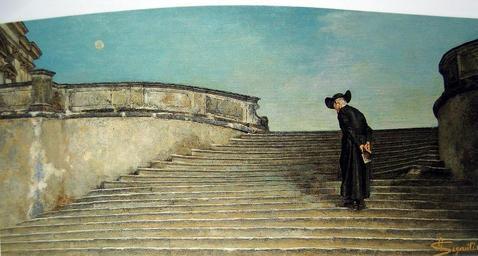 | Keywords: Segantini Frühmesse.jpg Frühmesse cm 108 211 oil on canvas Otto Fischbacher Segantini-Stiftung Depositum Kunstmuseum St Gallen Segantini - ein Leben in Bildern Werd-Verlag Zürich ; 2007-09 ; upload by Adrian Michael Institution Kunstmuseum St Gallen 1885/86 Creator Giovanni Segantini Giovanni Segantini PD-old-100 Stairs in art Moon in art Priests in art 1886 paintings Kunstmuseum St Gallen | ||||