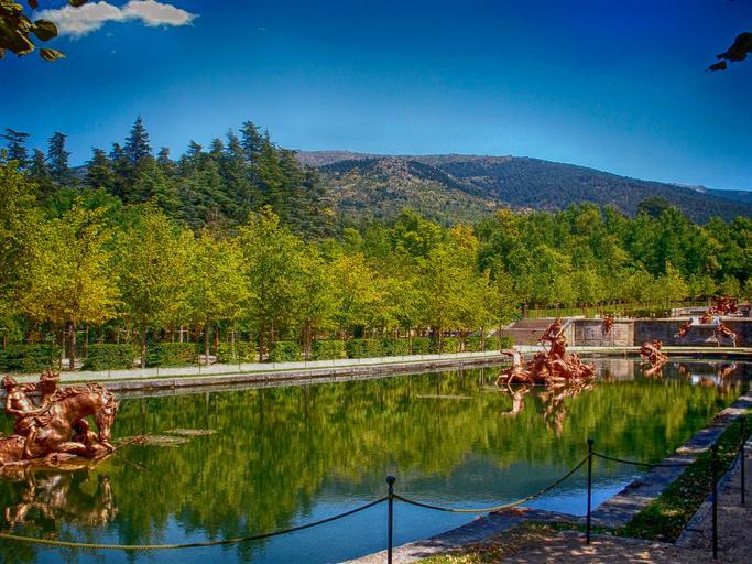 Keywords: segovia spain mountains forest trees woods hdr pool pond reflections sculptures monuments nature outside