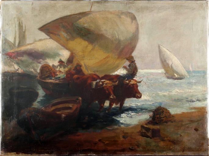 Keywords: Seguidor de la Joaquín Sorolla - Playa escena con figuras y toros.jpg Follower of Playa escena con figuras y toros oil canvas cm 56 5 75 object history credit line accession number http //www bonhams com/eur/auction/19821/lot/225/ Bonhams Oxford 28 03 2012 lot 225 PD-old-auto-1923 1923 DEFAULTSORT Sorolla beach and cattle xx Bonhams People at the beach in art by Joaquín Sorolla People with cattle in art by Joaquín Sorolla Paintings of boats by Joaquín Sorolla Paintings of fishermen at the beach Paintings of men with cattle Images from Bonhams |