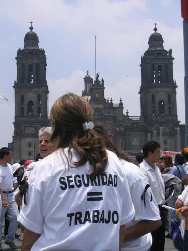 | Keywords: Seguridad-igual-trabajo.JPG Junio de 2004 Ciudad de Mexico Marcha en contra de la inseguridad; la llamada clase media fue la principal participante de esta movilización ciudadana que entre otras cosas sugirió la aplicación de la pena de muerte para combatir delincuentes 2004-06-27 own assumed Chapulinera Demonstrations and protests in Mexico City Metropolitan Cathedral of Mexico City | ||||