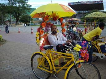 Keywords: Self,Rudolph.A.Furtado in Malacca.jpg en Seafare/Backpacker/blogger/photographer Rudolph a Furtado in a Melakan tricycle taxi Friday 26-10-2007 own Rudolph A furtado Transportations in Melaka Cycle rickshaws in Malaysia Bicycle sidecars