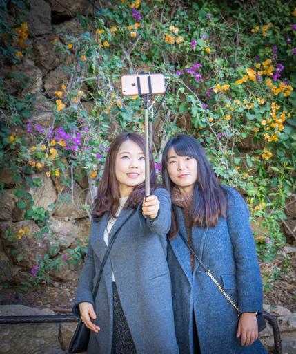 Keywords: selfie girls smiling flowers nature outdoor happy young portrait people self phone fun photo camera lifestyle female women smartphone happiness friendship cute travel cheerful