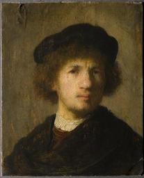 | Keywords: Selfportrait (Rembrandt Harmensz. van Rijn) - Nationalmuseum - 22374.tif Rembrandt Harmensz van Rijn information field Creator Rembrandt Selfportrait Rembrandt ™s self-portrait is a relatively small painting measuring just 12 2x15 5 cm The base is copper plate covered with a layer of white lead completely overlaid with gold leaf The portrait was acquired by Nationalmuseum in connection with the Rembrandt exhibition of 1956 and portrays the artist as a serious quite melancholic young man The face is modelled with fine careful brushstrokes The young man ™s gaze is searching and concentrated The portrait is dated 1630 when Rembrandt was 24 years old There are known to be five Rembrandt paintings on copper three of which are on a gold leaf ground In addition to the Nationalmuseum self-portrait these are An Old Woman at Prayer in Salzburg and The Laughing Soldier in The Hague The paintings are in a similar format and date from the same period There are major similarities in terms of lighting expression and character between Nationalmuseum ™s self-portrait and other early self-portraits However due to its small format and special base this little self-portrait required more detailed brushstrokes than the larger portraits on panel and canvas Rembrandts självporträtt är en till formatet litet mÃ¥lning “ den mäter endast 12 2x15 5 cm Underlaget är kopparplÃ¥t täckt av ett lager blyvitt och därefter överdraget med heltäckande bladguld Porträttet inköptes till Nationalmuseum i samband med Rembrandtutställningen Ã¥r 1956 och framställer konstnären som en allvarlig ganska dyster ung man Ansiktet är modellerat med fina försiktiga penseldrag Den unge mannens blick är forskande och koncentrerad Porträttet är daterat till 1630 och Rembrandt var dÃ¥ 24 Ã¥r Fem mÃ¥lningar pÃ¥ koppar av Rembrandt är kända och tre av dem har bladguld som grund Förutom Nationalmuseums självporträtt är det An Old Woman at Prayer i Salzburg samt The laughing soldier i Haag MÃ¥lningarna har ungefär samma format och är daterade till samma period Det finns stora överensstämmelser i frÃ¥ga om ljusföring uttryck och karaktär mellan Nationalmuseums självporträtt och andra tidiga självporträtt Med sitt lilla format och sin speciella grund krävde det lilla självporträttet dock en mer detaljerad penselföring än de större porträtten pÃ¥ pannÃ¥ och duk header Rembrandt ™s self-portrait is a relatively small painting measuring just 12 2x15 5 cm The base is copper plate covered with a layer of white lead completely overlaid with gold leaf The portrait was acquired by Nationalmuseum in connection with the Rembrandt exhibition of 1956 and portrays the artist as a serious quite melancholic young man The face is modelled with fine careful brushstrokes The young man ™s gaze is searching and concentrated The portrait is dated 1630 when Rembrandt was 24 years old There are known to be five Rembrandt paintings on copper three of which are on a gold leaf ground In addition to the Nationalmuseum self-portrait these are An Old Woman at Prayer in Salzburg and The Laughing Soldier in The Hague The paintings are in a similar format and date from the same period There are major similarities in terms of lighting expression and character between Nationalmuseum ™s self-portrait and other early self-portraits However due to its small format and special base this little self-portrait required more detailed brushstrokes than the larger portraits on panel and canvas Rembrandts självporträtt är en till formatet litet mÃ¥lning “ den mäter endast 12 2x15 5 cm Underlaget är kopparplÃ¥t täckt av ett lager blyvitt och därefter överdraget med heltäckande bladguld Porträttet inköptes till Nationalmuseum i samband med Rembrandtutställningen Ã¥r 1956 och framställer konstnären som en allvarlig ganska dyster ung man Ansiktet är modellerat med fina försiktiga penseldrag Den unge mannens blick är forskande och koncentrerad Porträttet är daterat till 1630 och Rembrandt var dÃ¥ 24 Ã¥r Fem mÃ¥lningar pÃ¥ koppar av Rembrandt är kända och tre av dem har bladguld som grund Förutom Nationalmuseums självporträtt är det An Old Woman at Prayer i Salzburg samt The laughing soldier i Haag MÃ¥lningarna har ungefär samma format och är daterade till samma period Det finns stora överensstämmelser i frÃ¥ga om ljusföring uttryck och karaktär mellan Nationalmuseums självporträtt och andra tidiga självporträtt Med sitt lilla format och sin speciella grund krävde det lilla självporträttet dock en mer detaljerad penselföring än de större porträtten pÃ¥ pannÃ¥ och duk 1630 Oil on copper Olja pÃ¥ koppar Size cm 12 15 5 Framed Size cm 34 37 7 Institution Nationalmuseum Stockholm Signerad R 1630 accession number 22374 NM 5324 place of creation Erik Cornelius / Nationalmuseum Nationalmuseum Stockholm cooperation project Licensed-PD-Art PD-old-auto PD-Nationalmuseum_Stockholm 1669 Media contributed by Nationalmuseum Stockholm 2016-10 Paintings in the Nationalmuseum Stockholm Self-portraits by Rembrandt Rembrandt |