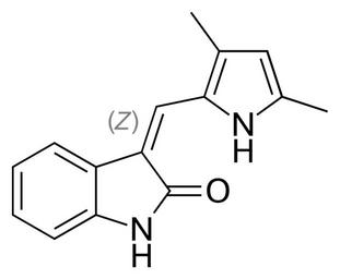 | Keywords: Semaxanib.svg Skeletal formula of the investigational kinase inhibitor semaxanib semaxinib SU5416 Created using http //www acdlabs com/download/chemsk html ACD/ChemSketch 10 0 and Inkscape Own 2007-03-20 Fvasconcellos Image SU5416 png Indoles Protein kinase inhibitors Azoles Gamma-lactams |