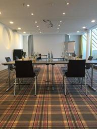 Keywords: seminar meeting hotel training lecture education human conference presentation rows of seats chairs group audience discussion speech canvas projection communication moderation