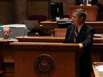 Keywords: indoor people table lectern Senator Kevin Lundberg speaking on the Senate Floor. Learn more at www.ColoradoSenateNews.com Senator Kevin Lundberg speaking on the Senate Floor. Learn more at www.ColoradoSenateNews.com