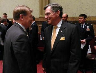 Keywords: people Senator Scheffel greets military members on the Senate floor. Senator Scheffel greets military members on the Senate floor.