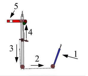 | Keywords: Señal de ferrocarril de Argentina.jpg es Es una imagen de una señal ferroviaria del tipo que indica peligro y obliga al tren a parar y le prohÃbe rebasarla Esta hecha con todas las partes de una señal además las flechas y los números indica la dirección que realizan los cables transmisores 1 Transmisión de la palanca en la cabina de señales al accional a vÃa libre el cable se dirige hacia la palanca 2 Cable y/o cadena que transmite de la palanca a la polea del poste de la señal 3 Cadena que transmite de la polea del poste al contrapeso va hacia la misma dirección que lo anterior 4 Eje transmisor que trasmite del contrapeso a la señal Este dispositivo tiene un contrapeso de seguridad en el caso que el cable se corte 5 La señal se baja a 45º en posición de vÃa libre Dieses Bild zeigt ein argentinisches Eisenbahnsignal mit der Anzeige Gefahr die einen Zug zum Halten zwingt und ein Anfahren verbietet Es zeigt alle Teile des Signals und außerdem nummerierte Pfeile die die Funktion der Drahtzüge erläutern 1 Bedienhebel im Stellwerk 2 Draht oder Kette die die Hebelstellung an den Signalmast übermittelt 3 Kette vom Signalmast zum Gegengewicht 4 à bertragungsachse vom Gegengewicht zum Signal Diese Einrichtung verfügt über ein Sicherheits-Gegengewicht für den Fall dass ein Drahtzug bricht 5 Das Signal senkt sich in 45°-Stellung um Fahrt anzuzeigen Tiu ĉi bildo montras argentinan fervojan semaforon de la tipo montranta danÄ eron kaj deviganta trajnon halti kaj ne ekveturi Ä i montras ĉiujn partojn de la semaforo kaj krome numeritajn sagojn kiuj ilustras la funkciadon de la drataj regiloj 1 Manipulilo en la regejo 2 Drato aŠĉeno transdonanta la manipulilan pozicion al la semafora masto 3 Ĉeno de la masto al la kontraÅpezaĵo 4 Akso transsenda de la kontraÅpezaĵo al la semaforo Tiu ĉi instalaĵo disponas kontraÅpezaĵon por la okazo de rompita drato 5 La semaforo malaltiÄ as al pozicio de 45° por permesi veturadon Fue trabajo de Gelpgim22 own Gelpgim22 2010-09-20 No por el momento Diagrams of railway signals in Argentina |