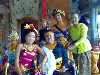 | Keywords: Senang Hati-Diah Larasati-Sang Ayu sisters.jpeg Sang Ayu Nyoman Puspa l foreground a member of the en Senang Hati Foundation and Sang Ayu Made Sriani r foreground the treasurer of the en Senang Hati Foundation just after the performance of Diah Larasati A Drama Dance Performance in en Ubud en Bali They are sisters; over Made's left shoulder is her husband didn't get his name All persons depicted are members of Senang Hati except the fellow in blue in back who is likely one of the Balinese politicians who attended Theme is An Information Dissemination Campaign for ˜Sekolah Inklusi ™ PWDs rights to attend regular school PWD Persons With Disabilities These details from a hand-out at the event; and from their website given below Own 2008-04-03 Jack Merridew See also http //www senanghati org/management_and_membership html http //www senanghati org/sang_ayu_made_sriani html Personality rights People of Ubud Senang Hati Foundation Disabled people People in wheelchairs Wheelchair dance |