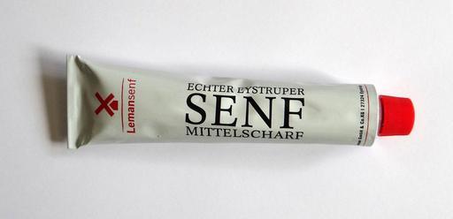 Keywords: Senftube Leman.jpg en Mustard tube produced by Leman Germany de Senftube der Firma Leman own Gerd Fahrenhorst 2014-05-30 Cc-zero Leman Feinkost Food tubes Location not applicable