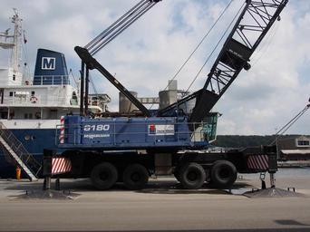 Keywords: Sennebogen 6180 harbor crane at VEJLE habor, pic1.JPG Photographed in Vejle Denmark own 2013-06-15 09 51 31 Alf van Beem CC-Zero Vejle harbor Other photographs by Alf van Beem