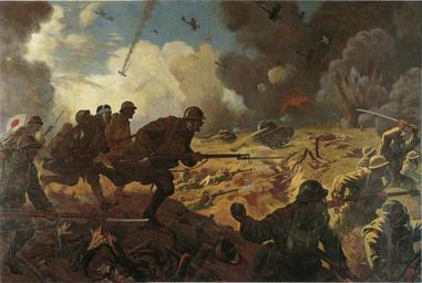 | Keywords: SenoKakuzou Charge.png Artwork 突撃 Charge 野覚蔵 Seno Kakuzou 1937 Oil on canvas cm 360 5 542 0 京国立近代美術館 National Museum of Modern Art Tokyo 生 郎・ 野 ・蔵野美香・河田明久・平 礼太・大谷 吾編著 戦争と美術 1937-1945 国書刊行会 2007年 ISBN 978-4-336-04954-4 PD-Japan 1940 Japan Not-PD-US-URAA 敗戦後GHQによって接収された後 1951年に戦利品としてアメリカ合衆国内へ移 された 戦争記録画 の中の1枚 アメリカ合衆国政 により無 限貸与 After the defeat of Japan in World War II commenced GHQ to confiscate many paintings depicting battles or battle fields in the war immediately in Japan Nowadays these paintings is called War Record Paintings GHQ had not or could not whether they have belonged to fine arts or just propaganda and prolonged their estimation In 1951 GHQ concluded that all of the paintings were the spoils of the war to send them US Due to complicated political or juridical reasons the War Record Paintings were not restored to Japan and loaned indefinitely by US government Other versions 図録より原寸大でスキャン RGB各8bit 360dpi TIFFでセーブ後 GIMPでトリミングしてpngファイル化 GIMPのノイズ除去フィルタは適用していない War Record Paintings from Japan PD-Japan Not-PD-US-URAA |