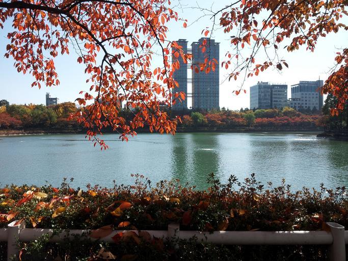 Keywords: seokchon lake lake palace autumn autumn leaves lake the leaves wood