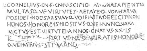 | Keywords: Sepolcro scipioni, iscrizione G, Publio Cornelio Scipione Ispallo.gif inscription from Scipio's grave rome check the letters on this map John Edwin Sandys Epigraphy in A Companion to Latin Studies ed John Edwin Sandys Cambridge Cambridge University Press 1913; date ancient romans PD-old Scipio's grave Rome - Inscriptions |
