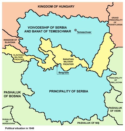 | Keywords: Serbia1849 01 01 04.png  en Two autonomous historical territories named Serbia 1 Principality of Serbia within Ottoman Empire 1833-1878 and 2 Voivodeship of Serbia and Banat of Temeschwar within Austrian Empire 1849-1860 sr Две аутономне исто ијске те ито ије са називом С бија 1 Кнежевина С бија у окви у Отоманског ца ства 1833-1878 и 2 Војводство С бија и Тамишки Банат у окви у Ауст ијског ца ства 1849-1860 own PANONIAN 2013 Cc-zero References Published references The Times History of Europe Times Books 2002 Sima M Ćirković Srbi među evropskim narodima Beograd 2004 Dr Tomislav Bogavac Nestajanje Srba Niš 1994 Dragomir Jankov Vojvodina - propadanje jednog regiona Novi Sad 2004 Istorijski atlas Zavod za udžbenike i nastavna sredstva - Zavod za kartografiju Geokarta Beograd 1999 Školski istorijski atlas Zavod za izdavanje udžbenika Socijalističke Republike Srbije Beograd 1970 Peter Rokai - Zoltan Đere - Tibor Pal - Aleksandar Kasaš Istorija Mađara Beograd 2002 Lazo M Kostić Srpska Vojvodina i njene manjine Novi Sad 1999 Drago Njegovan Prisajedinjenje Vojvodine Srbiji Novi Sad 2004 Čedomir Popov - Jelena Popov Autonomija Vojvodine - srpsko pitanje Sremski Karlovci 2000 Dr Dušan J Popović Srbi u Vojvodini knjiga 3 Novi Sad 1990 J H Šviker Politička istorija Srba u Ugarskoj Novi Sad - Beograd 1998 Sigfrid Kaper Srpski pokret u južnoj Ugarskoj 1848-1849 Beograd - Valjevo 1996 Dimitrije Boarov Politička istorija Vojvodine Novi Sad 2001 Dejan Mikavica Srpska Vojvodina u Habsburškoj monarhiji 1690-1920 Novi Sad 2005 Dr Milenko Palić Srbi u Mađarskoj - Ugarskoj do 1918 Novi Sad 1995 Drago Njegovan Srpska Vojvodina Enciklopedija Novog Sada knjiga 26 Novi Sad 2005 Istorija Vojvodine Enciklopedija Novog Sada sveska 5 Novi Sad 1996 Vladimir Ćorović Ilustrovana istorija Srba knjiga peta Beograd 2006 Vasilije Krestić Iz prošlosti Srema Bačke i Banata Beograd 2003 Slavko Gavrilović Srbi u Habsburškoj Monarhiji 1792-1849 Novi Sad 1994 Milan Tutorov Banatska rapsodija Novi Sad 2001 Jovan M Pejin Iz prošlosti Kikinde Kikinda 2000 Rodoljub Malenčić Miletić Novi Sad 1996 Čedomir Popov - Slavko Gavrilović Evropska revolucija i srpski pokret 1848-1849 Beograd - Novi Sad 1997 Internet references http //www sluzba vojvodina sr gov yu/SEKRETARIJATI-V/MANJINE/manjine-koliko-se-poznajemo/web-tekst/Brosura-ceo-tekst htm Bahovo_doba_-_Vojvodstvo_Srbija_i_Tamiški_Banat Bahovo doba - Vojvodstvo Srbija i Tamiški Banat in Serbian http //www thomasgraz net/glass/fj1titel htm Titles of Habsburg emperors http //www terra es/personal7/jqvaraderey/185915BK GIF Map http //terkepek adatbank transindex ro/kepek/netre/57 gif Map http //terkepek adatbank transindex ro/kepek/netre/256 gif Map http //www historyonmaps com/BWSamples/Magyarorszagadminsitrative html Map http //www lib utexas edu/maps/historical/balkans_1859 jpg Map Voivodeship of Serbia and Banat of Temeschwar Serbia1849131 Maps of the Principality of Serbia Serbia1849131 Habsburg Military Frontier Serbia1849131 Maps of the Ottoman period in the history of Serbia Serbia1849131 Maps of the Habsburg period in the history of Serbia Serbia1849131 Maps of the history of Serbia in modern times Serbia1849131 Maps of the history of Vojvodina Serbia1849131 Maps of the Austrian Empire Serbia1849131 Maps of vassal states of the Ottoman Empire Serbia1849131 |