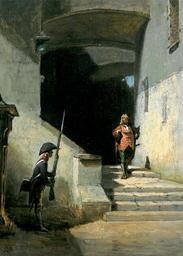 Keywords: Serenissimus (Carl Spitzweg).jpg Artwork de Serenissimus Er kommt oil canvas Museum Georg Schäfer Genre works scanned from book c 1830 Creator Carl Spitzweg PD-old-100 Other versions Paintings by Carl Spitzweg Stairs in art