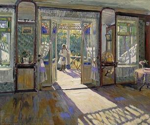 Keywords: Sergei Vinogradov - In a House - 1913.jpg In a House <br>oil on canvas The Bridgeman Art Library 1913 Creator Sergey Vinogradov PD-old Sergei Arsenevich Vinogradov