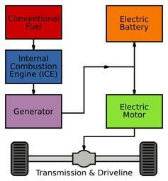 Keywords: Serial Hybrid ICE-Electric.svg en A drivetrain of a serial hybrid ICE-electric vehicle Own Inductiveload 2009-04-20 Hybrid-powered vehicles