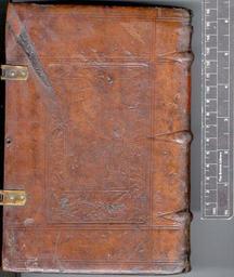 | Keywords: Sermones quadragesimales - Lower cover (c66e6).jpg Style Panel design Religious miscellaneous; Caption Lower cover; Colour Brown; Edge Unspecified exhibition history Decorative Technique Panel stamp in blind Tooled in blind; Cover Material Calf Wooden boards Traces of 2 pairs of clasps But Macchi states; c 1498-1515 Normandy Robert or Richard Macé Annunciation panel-stamp 6 known examples D Gid- M -P Laffitte Les reliures à plaques françaises p 39-40 28 n 1 ; Virgin's coronation panel-stamp 6 known examples D Gid- M -P Laffitte Les reliures à plaques françaises p 92-93 64 n 1 object history Text 1506; Lyons; Unspecified object type Cc-zero place of creation Binding England place of discovery See J B Oldham Blind Panels of English Binders Cambridge 1958 Bib see upper cover British Library image http //www bl uk/catalogues/bookbindings/LargeImage aspx RecordId 020-000002668 ImageId ImageId 40939 Copyright BL Sermones quadragesimales Uploaded with GWToolset Sermones quadragesimales - Lower cover c66e6 http //www webarchive org uk/bldatasets/bindings/5427_3 jpg Bookbinding 16th-century bookbinding British Library Bookbindings |