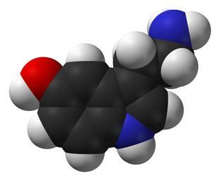 | Keywords: Serotonin-Spartan-HF-based-on-xtal-3D-sf-web.png Space-filling model of the serotonin molecule C<sub>10</sub>H<sub>12</sub>N<sub>2</sub>O Colour code Carbon C grey-black Hydrogen H white Nitrogen N blue Oxygen O red Structure based on that found in the salt serotonin hydrogen oxalate determined by X-ray crystallography in http //dx doi org/10 3891/acta chem scand 32a-0267 Acta Chem Scand 1978 32a 267-270 Model manipulated in http //www crystalmaker com/ CrystalMaker 8 3 The structure of the serotonin cation from the above crystal structure was opened in http //www wavefun com/products/macintosh/Student/mac_student html Spartan Student 4 1 one hydrogen atom on the RNH<sub>3</sub><sup>+</sup> group was deleted yielding the neutral serotonin molecule Its structure was then refined with Hartree-Fock level of theory and the 3-21G basis set Image generated in http //accelrys com/products/discovery-studio/visualization/discovery-studio-visualizer html Accelrys DS Visualizer Own 2011-03-13 Ben Mills Benjah-bmm27 Images by Ben Mills Serotonin |