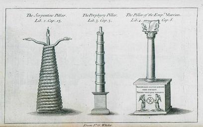 | Keywords: Serpent Column, Constantine's column, Marcian's column - Sr. G. Wheler, Constantinople, 1729.jpg el Ανα αράσταση του 1729 των μνημείων του Ι οδρόμου στην Κωνσταντινού ολη Α ό αριστερά ρος τα δεξιά ο Τρικαρηνός Όφις η στήλη του Κωνσταντίνου και ο κίονας του αρκιανού en 1784 depiction of the monuments at the Hippodrome of Constantinople From right to left the Serpent Column Constantine's column and Marcian's column 1729 http //el travelogues gr/item php view 46730 Sr G Wheler other versions Original source GILLES Pierre The antiquities of Constantinople London John Ball 1729 Custom license marker 2015 11 08 PD-old-100 PD-US-unpublished Hippodrome of Constantinople Serpent Column in art Column of Constantine Column of Marcian Uploaded with UploadWizard |