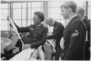 | Keywords: Service School Command, San Diego, California...Radioman third class Denita G. Harvey, left, of Los Angeles... - NARA - 558536.tif Scope and content General notes 558536 Local identifier 428-N-1171336 Department of Defense Department of the Navy Naval Photographic Center 09/18/1947 - Still Picture Records Section Special Media Archives Services Division NWCS-S National Archives at College Park 8601 Adelphi Road College Park MD 20740-6001 1958 - 1981 Record group Record Group 428 General Records of the Department of the Navy 1941 - 2004 Record group ARC 717 General Black-and-White Photographic File of the Department of Navy compiled 1958 - 1981 Series ARC 558525 File unit File unit ARC Variant control numbers NAIL Control Number NWDNS-428-N-1171336 yes Other versions NARA-cooperation PD-USGov Women in the United States Navy |