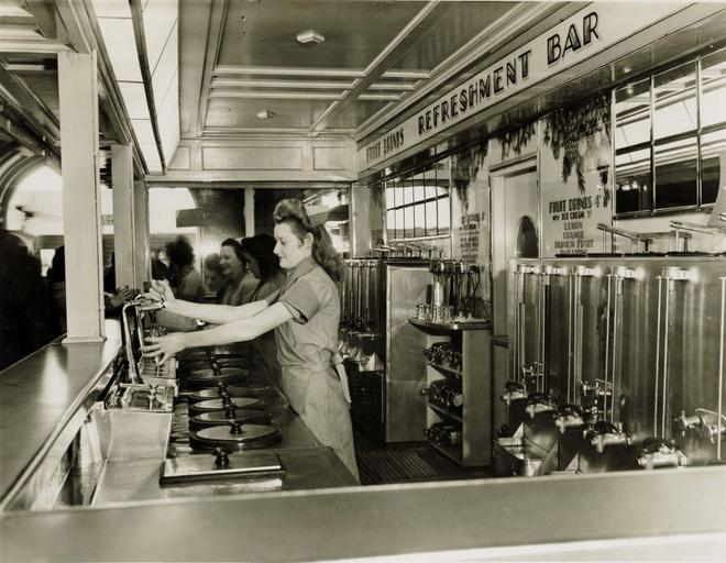 | Keywords: archives state records nsw staterecordsnsw newsouthwales blackandwhite central railway station centralrailwaystation people women indoor monochrome black and white Central Railway Station, Sydney - interior of milk bar showing staff Dated: 09/04/1946 Digital ID: 17420_a014_a014000087 Rights: www.records.nsw.gov.au/about-us/rights-and-permissions We'd love to hear from you if you use our photos. Many other photos in our collection are available to view and browse on our website using Photo Investigator. Central Railway Station, Sydney - interior of milk bar showing staff Dated: 09/04/1946 Digital ID: 17420_a014_a014000087 Rights: www.records.nsw.gov.au/about-us/rights-and-permissions We'd love to hear from you if you use our photos. Many other photos in our collection are available to view and browse on our website using Photo Investigator. |