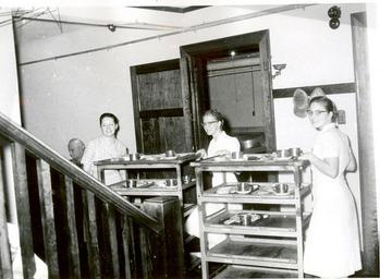 | Keywords: esther hostetler estherhostetler wanda hostetler wandahostetler sue miller suemiller mennonite board of missions maple lawn homes home for the aged eureka illinois voluntary service mennonite voluntary service elderly nursing homes mennoniteboardofmissionsmaplelawnhomeshomefortheagedeurekaillinoisvoluntaryservicemennonitevoluntaryserviceelderlynursinghomes Caption: March 31, 1959. Taking the early trays to the elevator are left to right, Esther Hostetler, Wanda Hostetler, and Sue Miller, VSers from Ohio. Citation: Mennonite Board of Missions. Photographs. Illinois, Eureka, Home for the Aged, 1957-1961. IV-10-7.2 Box 3 Folder 73. Mennonite Church USA Archives - Goshen. Goshen, Indiana. Caption: March 31, 1959. Taking the early trays to the elevator are left to right, Esther Hostetler, Wanda Hostetler, and Sue Miller, VSers from Ohio. Citation: Mennonite Board of Missions. Photographs. Illinois, Eureka, Home for the Aged, 1957-1961. IV-10-7.2 Box 3 Folder 73. Mennonite Church USA Archives - Goshen. Goshen, Indiana. |