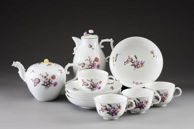 | Keywords: Servis. Tyskland. Ilmenau - Hallwylska museet - 87131.tif Servis bestående av päronformig kaffekanna och tekanna båda med lock fyra koppar samt fyra fat av gemensam form och dekor Kaffekannans lock har knopp av rosor och teknannans lock har knopp av frukt med stjälk och blad De lågt klockformiga kopparna har dekor med blombuketter och faten buketter och ströblomster Omattribuerad 2008 från okänd tillverkare till Berli n Mått Kaffekanna H 14 7; utan lock H 12 7; d 9; Lock H 2 5; D 4 5; Tekanna H 10 6; utan lock 9 1; D 10 4; Lock H 2 3; D 4 8; Koppar H 4 7 - 5 1; D 7 6 - 7 8; Fat H 2 9 - 3 2; D 13 8 - 14 1 Fabriken grundlagd år 1752 av Wilhelm Caspar Wegely som av ekonomiska skäl tvingades stänga 1757 Fabriken öppnades ånyo 1761 av köpmannen Johann Ernst Gotzkowsky med Friedrich Elias Meyer som modellmästare 1763 övertogs fabriken av Fredrik den Store och fick namnet Königliche Porzellan Manufactur Pris 35 Mk Rescontra Walther v H 27 Maj 1896 original caption Servis Tyskland Ilmenau HWY Gr XLVII XII U f 01 <br/> Nyckelord Servis Tekanna Rosor Blomdekor Porslin Europeiskt Berlin Koppar Fat Föremålsbild - 1751 1757 HWY place of origin Berlin DE original filename hm_dig4770_6555 17702 inventory number HWY XLVII XII U f 01 87131 CC-BY-SA Jens Mohr Jens Mohr Porcelain tableware Plates Porcelain in the Hallwyl museum Media contributed by LSH unmatched keyword Media contributed by LSH 2013-10 |