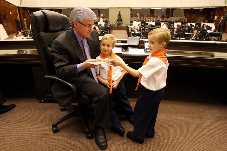 Keywords: Deputado Valdir Rossoni (PSDB) com os pequenos desbravadores / Foto: Nani Gois (uso do crédito obrigatório) sessão