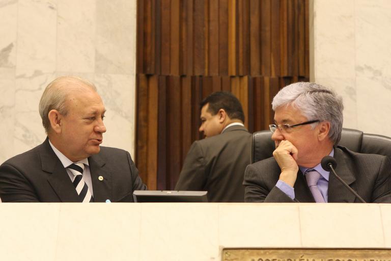 Keywords: Lider do governo na casa deputado Ademar Traiano (PSDB) e o presidente da casa Valdir Rossoni (PSDB) / Foto: Nani Gois (uso do crédito obrigatório) sessão