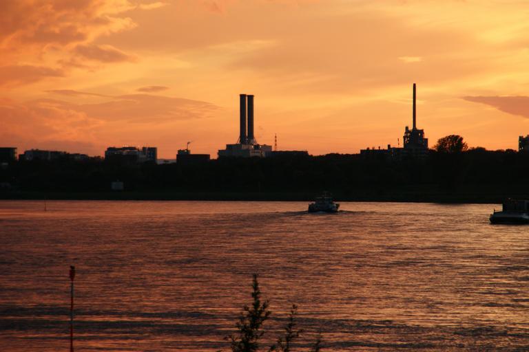 Keywords: setting sun sunset mood clouds atmosphere dusk rhine dormagen germany