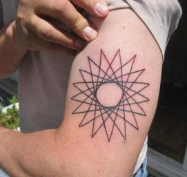 Keywords: Seventeen-point star tattoo.jpg en Photo my wife Colleen took Asked her; she released all rights The page that inspired the tattoo http //primepuzzle com/blog/starps17 html The particular image-page http //primepuzzle com/blog/st17s6 jpg 2012-07-28 own Deanmoore cc-zero Small Icosihemidodecahedron Arm tattoos Mathematical tattoo