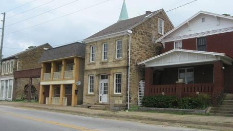 | Keywords: Seventh Street in downtown Cannelton.jpg 37 54 45 6 N 86 44 29 W Buildings on the northeastern side of the 100 block of S Seventh Street w Indiana State Road 66 State Road 66 in downtown Cannelton Indiana Cannelton Indiana United States From left to right the buildings are 1 the F H Clemens Building a Greek Revival commercial building built in 1861; 2 a modern commercial building built in 1960; 3 a Greek Revival house built in 1850; 4 a bungalow built in 1915; and 5 towering above the others the spire of St Michael's Catholic Church a Gothic Revival church built in 1859 Except for the modern commercial building these properties are all part of the Cannelton Historic District a historic district United States historic district that is listed on the National Register of Historic Places Own 2011-07-16 User Nyttend Nyttend No<nowiki></nowiki>ne Built in Indiana in 1850 Built in Indiana in 1859 Built in Indiana in 1861 Built in Indiana in 1915 Built in Indiana in 1960 Houses built in the United States in 1850 Houses built in the United States in 1915 Churches in the United States built in 1859 1850s churches in Indiana 1850s houses in Indiana 1910s houses in Indiana Brick houses in Indiana Bungalows in Indiana Cannelton Historic District Churches in the Roman Catholic Archdiocese of Indianapolis Greek Revival architecture in Indiana Indiana State Road 66 Saint Michael churches in the United States Stone churches in Indiana Stone houses in Indiana Building-centered pictures by User Nyttend Taken with Canon PowerShot A540 |