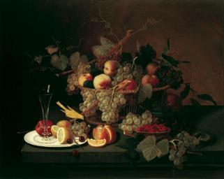 | Keywords: Severin Roesen - Still Life With Fruit, Goblet, and Canary (Nature's Bounty).jpg Artwork Creator Severin Roesen 1851 oil canvas cm 73 91 4 White House Washington D C United States accession number 961 165 1 object history Gift of Mr and Mrs Wickersham June and the J M Kaplan Fund Inc credit line The White House Historical Association White House Collection signed and dated lower right S Roesen 1851 http //www whitehouseresearch org/assetbank-whha/action/viewAsset id 219 White House Art Collection PD-old-auto-1923 1872 Severin Roesen Paintings in the White House 1850s still-life paintings 19th-century still life paintings of fruit baskets Still life paintings of flowers 1851 paintings |