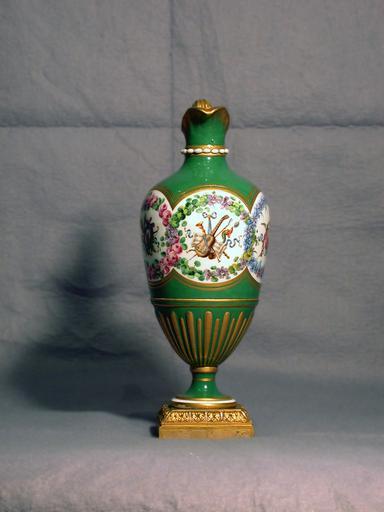 | Keywords: Sèvres Porcelain Manufactory - One of a Pair of Pitchers (Vase en burette) - Walters 48764.jpg These pitchers with apple green grounds are decorated with trophies enclosed in floral wreaths ca 1767 soft-paste porcelain with painted enamel decoration cm 12 8 accession number 48 764 11741 Henry Walters Baltimore date and mode of acquisition unknown Walters Art Museum Henry Walters Acquired by Henry Walters Decorator's Mark Floral wreaths possibly by Jean-Baptiste Tandar aîné 1729-1816 place of origin Sèvres France Walters Art Museum license Sèvres porcelain in the Walters Art Museum Media contributed by the Walters Art Museum needs category review Painted enamel art in the Walters Art Museum Porcelain pitchers |