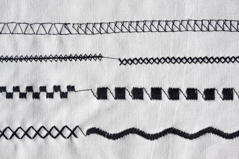 Keywords: sewing machine embroidery black white sew hand labor tinker fabric zig zag pattern